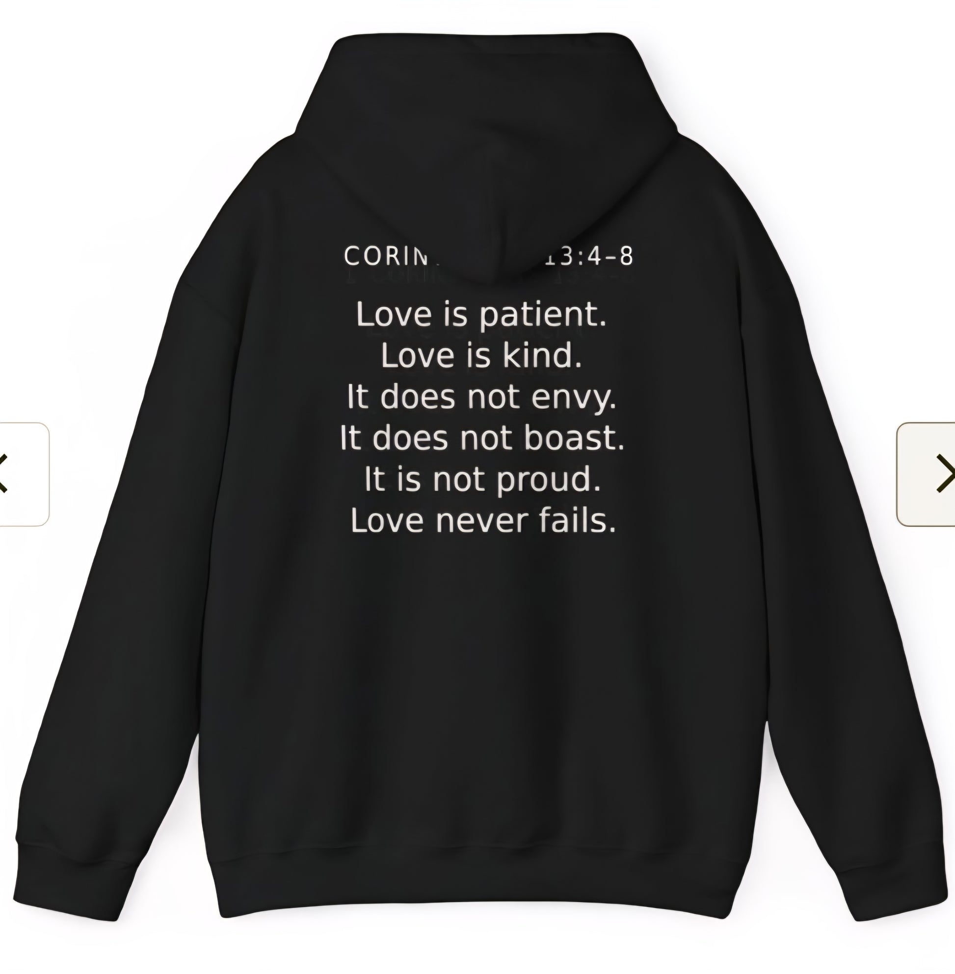 Christian Heart Cross Hoodie — "Love" with 1 Corinthians 13 Verse Back